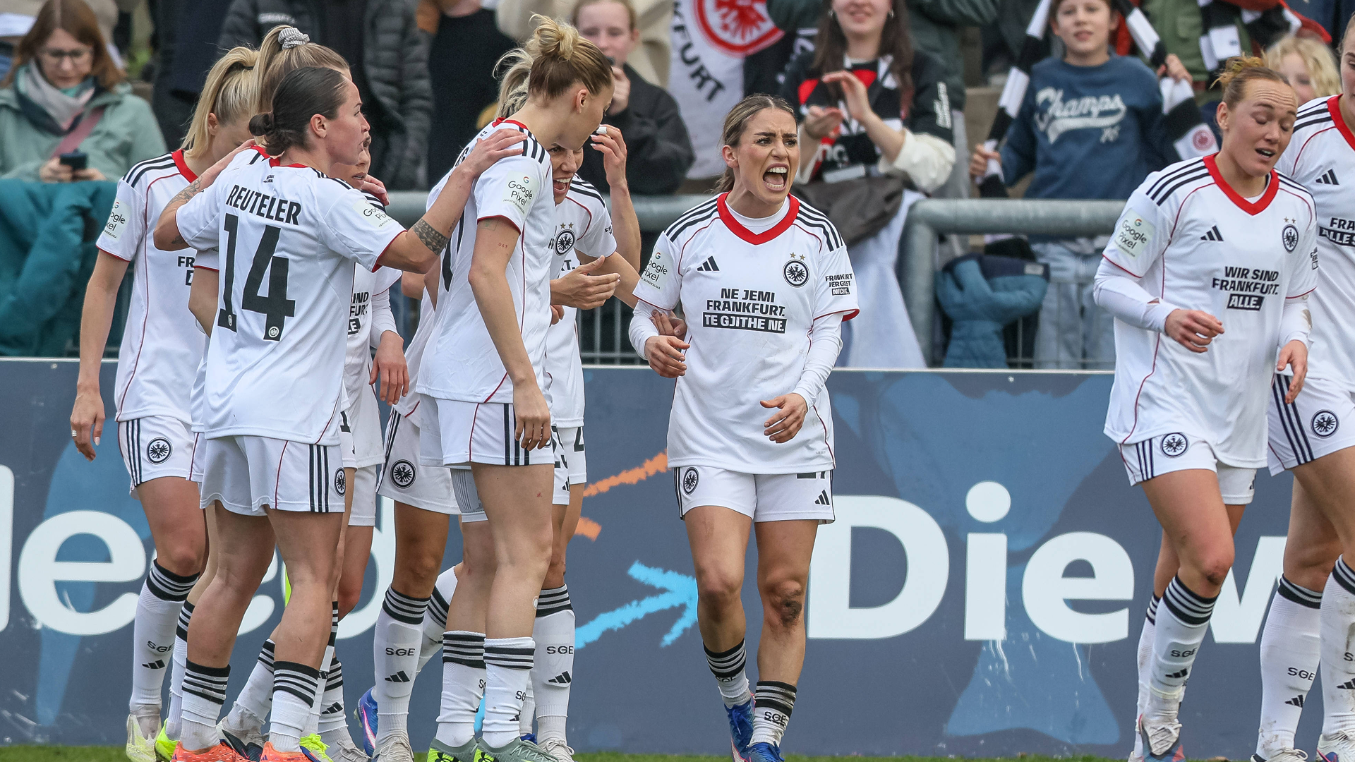 Eintracht vs. Köln is a rivalry between two clubs with deep supporter cultures, and doing this in front of Deutsche Bank Park's home end means the message gets seen by tens of thousands.